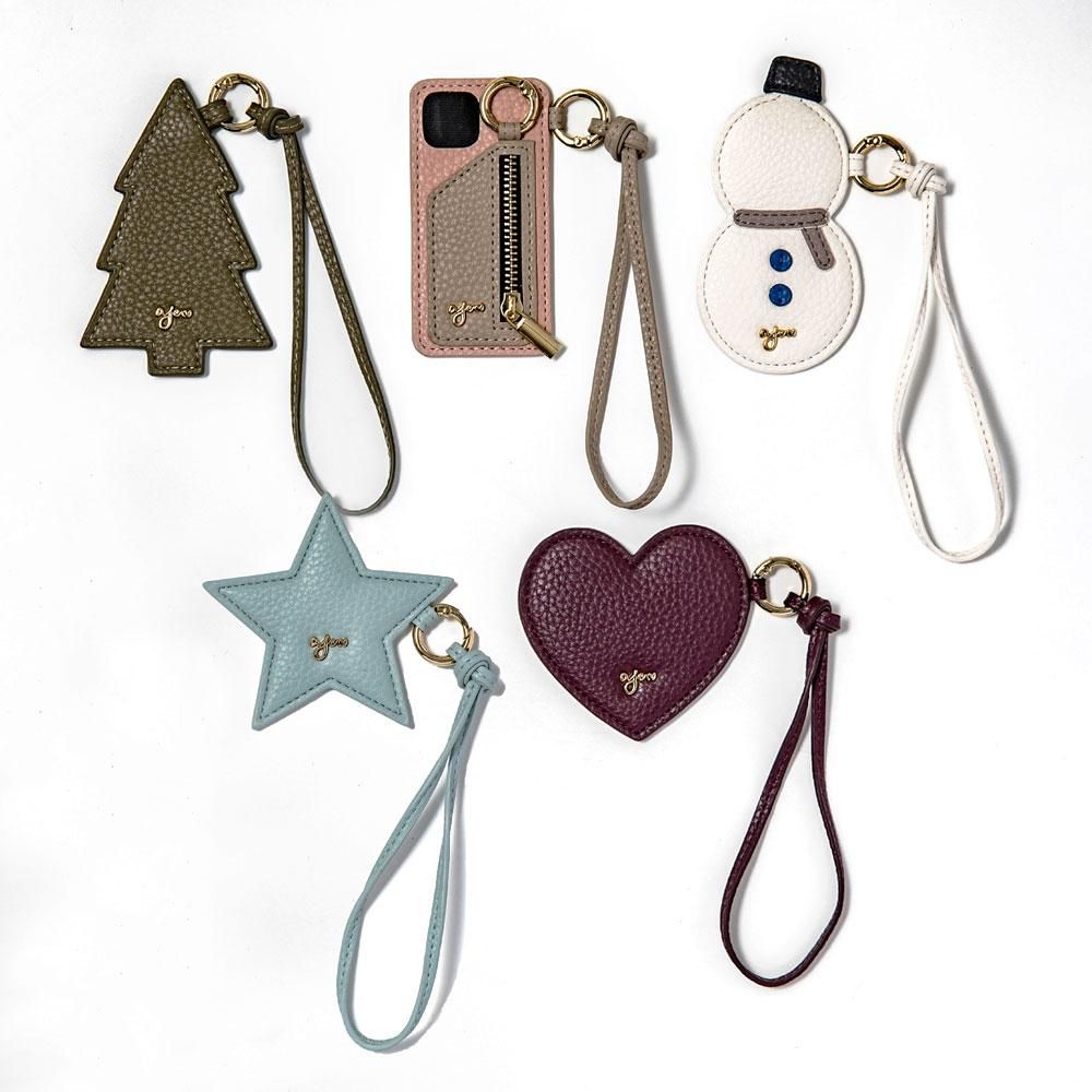 ホリデーシーズンにぴったりなツリーや雪だるまをはじめ、ajewの代表的なアイテム「cadenas case」、1年中使いたいハートや星柄などユーモアに富んだ全5種類をご用意。